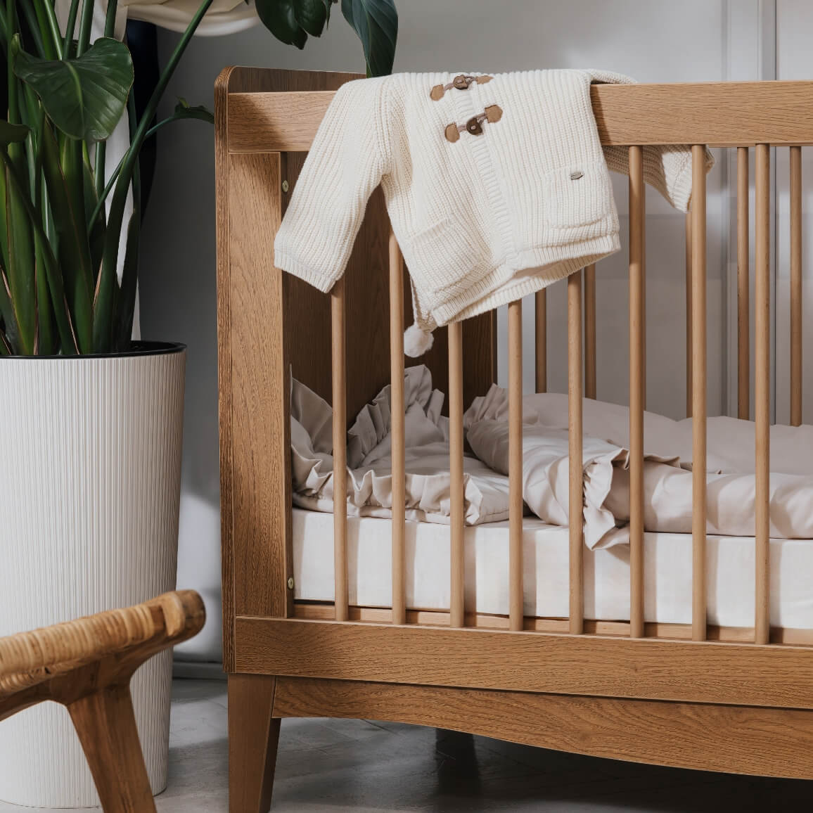 - With carefully integrated teething guards and durable craftsmanship, the Lille crib blends elegance with practicality. A piece that grows with your child, ensuring restful, peaceful sleep through the early years.