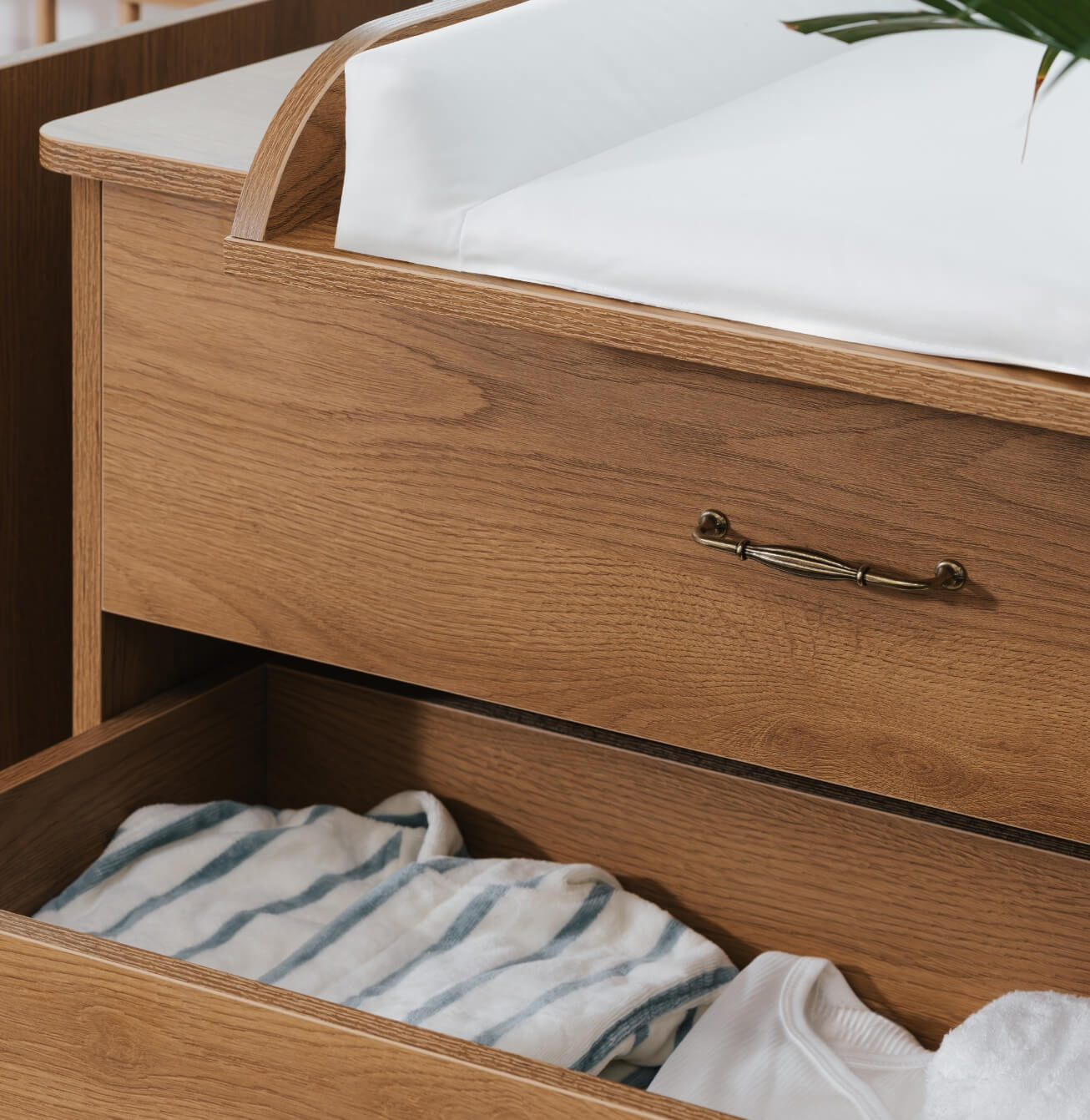 Together with the crib and changing table, the dresser creates a harmonious and stylish set for your child’s room.
